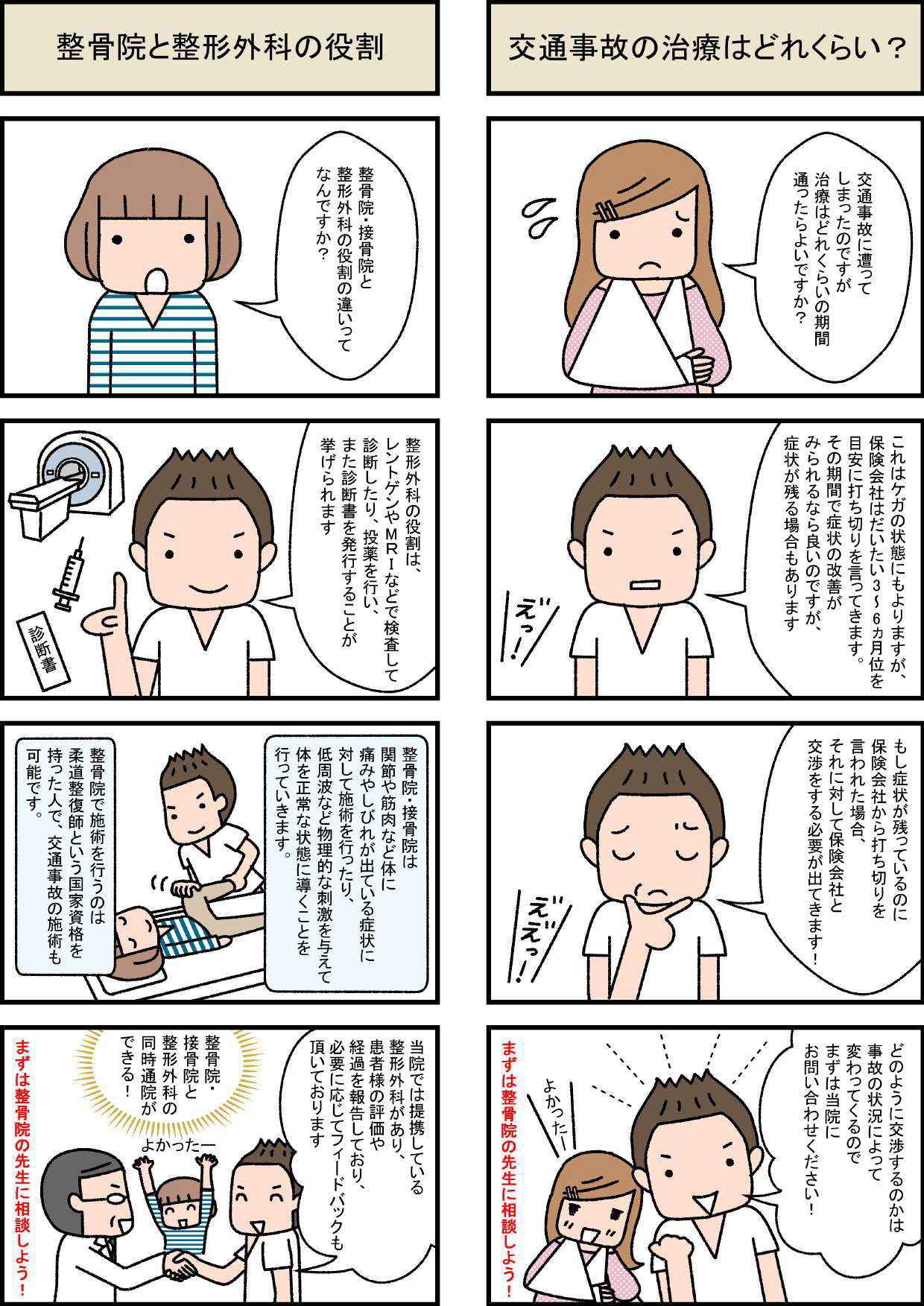 整骨・鍼灸・マッサージの保険施術に関して、医師の診断やレントゲン撮影などが必要な場合は、当院で紹介状を作成し、連携している専門クリニックをご案内いたします。